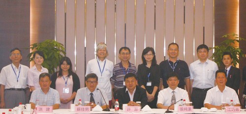 ▲(前排左起)浙江省旅遊局市場開發處處長洪建、台灣區觀光旅遊總會理事長蘇佳男、浙江省旅遊局副局長許澎、溫州市旅遊局局長張純潔、溫州市旅遊局副局長江巧弟、後排左起:順利國際旅行社總經理許世榮、溫州國旅旅遊有限公司營銷總經理施菲菲、帆華旅行社商務部鄭偉伶、國佳旅行社總經理陳照明、慶陽旅行社副總經理謝世宗、名門國際旅行社總經理王富美、長合旅行社經理劉旭晃、華信航空溫州辦事處總經理胡鴻鈞、雄獅旅行社副主任蔡耿光。