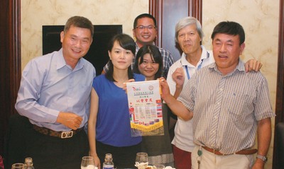 ▲(左起)大都會旅行社林進榮、溫州國旅旅遊有限公司營銷總經理施菲菲、帆華旅行社商務部鄭偉伶、國佳旅行社總經理陳照明、溫州市旅遊局市場開發處處長林治堅、溫州國旅旅遊有限公司行政總經理潘建勝(後)。