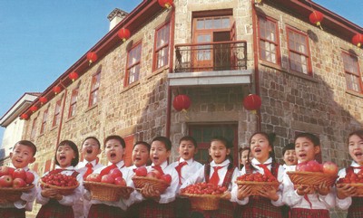 ▲煙台特產—萊山大櫻桃和棲霞紅蘋果