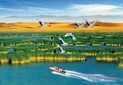 是一處自然景觀獨特的沙漠草原濕地旅遊區,為沙坡頭的後花園。
