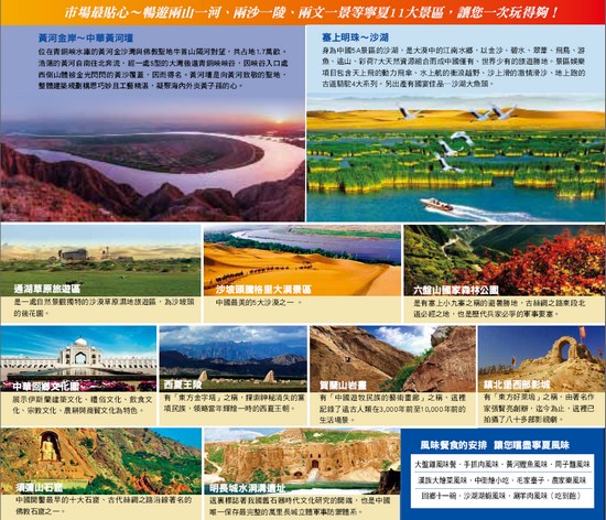 中安旅行社在中國東方航空每班直航班機的支持下,以大漠尋奇品牌推出價格與品質均優的產品。2014年隆重推出的「神奇寧夏東方金字塔8日遊」,產品規格祭出11大景區、全程無購物、無自費、夜宿4星酒店、安排各項風味餐食。