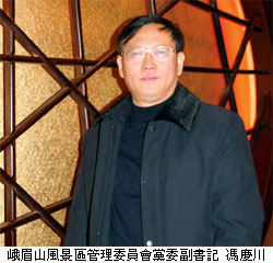 峨眉山風景區管理委員會副總經理杜輝,談到峨眉山達成計畫中的新形象的過程仍然難掩興奮,對於峨眉之所以能夠被列名「中國第一山」,也驕傲地提出十大佐證。
