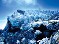 海拔3,077公尺的峨眉金頂,以雲海、雪峰、金殿相互輝映,造就了峨眉大光明山的絕妙景致。山頂一般自9月底開始降雪,長達83天的降雪日結束於次年3月底。據說峨眉山從11月到次年2月的氣候最穩定,山頂經常晴朗,是觀看日出、雲海、佛光、晚霞等景色的最好季節。