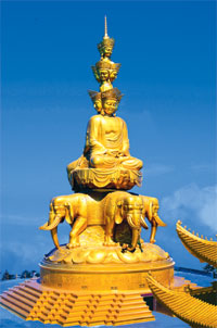 在中國4大佛教名山當中,只有峨眉山被列入世界遺產名錄當中!從西元一世紀建立了第一座寺院起,峨眉逐漸成為佛教重地,明朝萬曆年間修建的報國寺是其中最宏偉的一座,佔地60餘畝。而在三千公尺山巔修建的金殿、銀殿、銅殿及高48公尺的十方普賢金像,更在群峰簇擁、日月同輝之下,使全球旅客驚嘆!