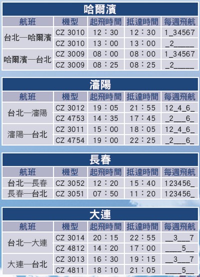 南航不僅在台北出發至大連、瀋陽、長春、哈爾濱的點對點服務最為完整,在東北4個分在公司投入200架機隊陣容,提供東北境內提供完整航線服務,亦為絕佳的聯程產品操作優勢。