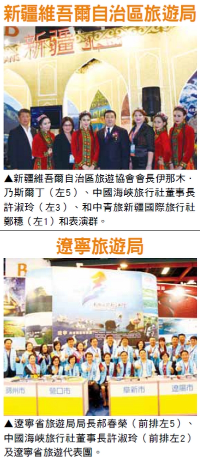 今年海峽兩岸台北旅展展區圍繞 「美麗中華之旅」主題,共計有 189個展位採單獨特裝。4天展期 有33萬台灣民眾參加旅展,創歷史 新高。本屆旅展包含序館發放的30 萬份資料在內,大陸展團共發放各 類旅遊宣傳資料含影像贈品約200 萬份,舉辦12場旅遊產品說明會, 39場演出,以及民俗藝人的現場展 示、表演等豐富內容。11/10主辦 單位海旅會針對本次參展代表舉辦 總評及頒獎儀式。