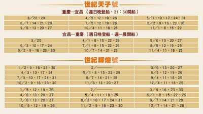 航班:11╱21、12╱5、12╱19、12╱31、 1╱16、1╱30、2╱13