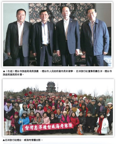 值得一提的是,在2015年初志洋旅行社獲得2項 大獎:2014年煙台旅遊貢獻獎,以及威海旅遊金牌 獎,並且今年志洋旅行社獲山東孟子修學遊產品的 獨家代理,也是台灣唯一受邀參加孟子修學遊國際 論壇暨鄒魯研學旅遊聯盟成立大會的業者,在在顯 示志洋旅行社推廣山東實力,品牌獲各界信賴。