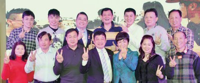 ▲(右起)寧夏沙坡頭旅遊景區總經理韓忠勝、台北市大同區星明里里長李秀男、鬍鬚張餐飲集團董事長張永昌、台北市牛肉麵交流 發展協會理事長鄭正中、寧夏回族自治區旅遊局國際合作交流處處長牛犇、中衛市旅遊局局長黃華、寧夏商圈發展協會總幹事林定 國、中衛市旅遊局黨委書記郭吉武、台北市寧夏夜市觀光協會理事長許家和、寧夏沙坡頭旅遊產業集團董事長王福中。