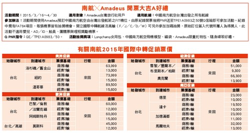 除了直客端的票價優惠外,中國南方航空也與Amadeus攜手,推出「開票大吉 A好禮」活動,歡迎同業多加共襄盛舉。