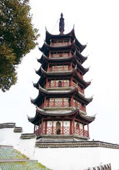 占鰲塔位於鹽官春熙門外臨江海塘上、今觀潮勝地公園內,為風水塔,取占鰲以寓鎮海安瀾之意,始建於明萬曆年間,該塔為磚木結構的樓閣式塔,登塔可俯瞰錢塘江一線潮。