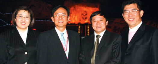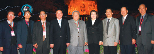 ▲洛陽市副市長王立林(右2)與河南省旅遊局副局長何琳(左1)、觀光領隊協會理事長蕭志洋(左2)、旅奇整合行銷總裁何昭璋(右1)於龍門石窟前合影。