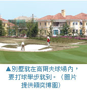 最後一天的行程是看別墅,而且看的是高爾夫千萬別墅!穎奕高爾夫球場豪邁不拘的視野恰恰成了其別墅的完美背景,更有五星級飯店的服務入戶,其貼心服務讓團員深深感動。而且臨近嘉定汽車城,所以汽車博物館的主題更是吸引了很多愛車的男士。別墅的設計在西班牙的熱情風格與義大利的復古風格中交錯,異國的浪漫氣息亦讓人喜愛。團員們看罷頂級別墅,無不感嘆上海的地產界發展之成熟。進行完別墅參訪之後,大家用完午餐,帶著興奮和不捨踏上了回家的路。