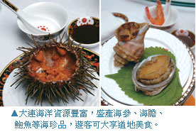 大連與杭州、成都並列三大「中國最佳旅遊城市」,會讓台灣遊客首先感受到的美好,來自於良好氣候,因為屬於具有海洋性特點的暖溫帶大陸性季風氣候,冬無嚴寒,夏無酷暑,且四季分明。另外,區內山地丘陵多,平原低地少,造就旅途視覺上的起伏層次。再加上俄國與日本統治期間的建設,使得大連市區流露迷人「洋氣」,從它先後獲得聯合國全球「環境500佳」、中國「人居環境獎」、「環境保護模範城市」等榮譽稱號,不難感受這座城市的優質環境。此外,大連還被譽為水果之鄉,盛產蘋果、黃桃、大櫻桃等;海洋資源更是豐富,盛產海參、海膽、鮑魚等海珍~,讓不論何時造訪的遊客都能享受特色美食。