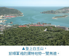 大連最南端的旅順口區三面環海,隔海與山東半島相望,海岸線總長169公里,同時名列國家級重點風景名勝區、國家級自然保護區、國家森林公園和歷史文化名城。1880年,清政府在此興辦北洋水師,建軍港、修炮台、築船塢、扎營盤,造就了旅順口成為軍事要塞。1894 年的中日甲午戰爭和1904年的日俄戰爭,都在旅順口歷史上留下了滄桑一頁,使旅順成為中國乃至世界近代史上的露天博物館。東雞冠山的戰爭遺跡,無聲述說這些慘痛過往。尤其推薦登上白玉山,旅順軍港的獨特地勢一覽無遺。或是前往老鐵山區,除了一賭百年燈塔的英姿,更要觀賞黃海與渤海在此分界的天然奇觀,天晴能見度高時,還有機會眺望山東半島的沿海小島。