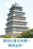 在華西村,最令人注目的莫過於地標性的建築—華西金塔。如今,華西已經矗立著九座金塔,塔內酒店、醫院等服務設施齊全,設備先進。而且,村中正在開工建設328公尺高,74層的「空中新農村」大樓,這將成為長三角的又一個地標性建築。