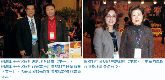 台北市旅行商業同業公會理事長曾盛海,提到兩岸旅客在密集交流之下,更需要旅行同業一起努力,將旅遊品質再次提升,且透過這次交流會,為雙方旅遊業者溝通的最佳管道。特別是此次會議能讓業者有足夠時間、充分溝通,且在大會精心安排數十場各省旅遊局說明會,讓業者明確獲得各省旅遊資源的正確方向。至於大陸方面已明確表示,內地居民赴台已準備充分,曾盛海也進一步提出,趁著此次交流會,將與中國相關單位討論,為大陸旅客來台的實施方向做溝通,等兩岸當局相關規定明朗化,旅遊同業殷盼多時的利多,即可順利開展。