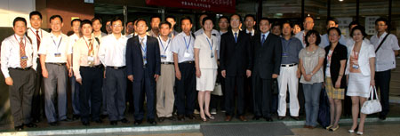 (前排右6)福建省旅遊協會副會長陳揚標率團參訪台灣科威資訊總公司與台灣凱亞資訊,並就未來兩岸旅遊資訊平台系統、區域性分銷整合平台系統、出境分銷系統與入境管理系統進行研討與交流。