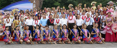 (左起)和邦國際旅行社總經理楊斌、樂山大佛文物保護管理局主任王曉寧、峨嵋山風景管理區管理委員會主任秦福榮、樂山市人民政府副秘書長戴國際、峨嵋山旅遊股份有限公司董事長馬元祝、旅行公會總會理事長姚大光、樂山市市長蔣輔義、旅行公會總會大陸委員會副召集人董彬、四川省旅遊局長局長張榖、旅行公會總會創會名譽理事長曾盛海、台灣省旅行公會理事長黃瑞榮、樂山市人民政府常務副市長夏代榮、北市公會監事主席莊世忠、四川省樂山市旅遊局局長李文飛、峨嵋山風景管理區管理委員會常務副主任馮慶川。