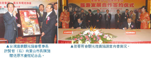 日前嘉義市觀光協會應安徽省黃山市市長陳強邀請,組團前往黃山參訪,並舉行「黃山旅遊集團—嘉義市觀光協會兩會旅遊合作」洽談會,會中並簽署兩會協議意向書,象徵合作的密切與積極。