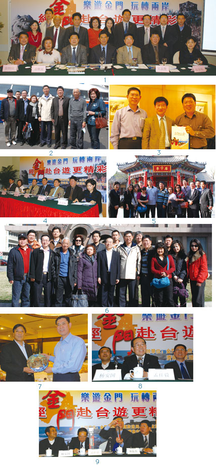 而由何桂泉和楊再平所聯合進行圖片和DVD短片的導覽,不僅以生動的方式來介紹金門當地和新景點、新遊程,更引起眾多旅遊業者的迴響和提問,現場更對於金門縣政府所攜帶的各種特產,像是金門高粱、金酒面膜、砲彈鋼刀、貢糖和麵線等特產,深獲業者的好評;晚宴則由金門縣政府宴請所有與會來賓,並趁此機會聯絡感情和進行交誼。