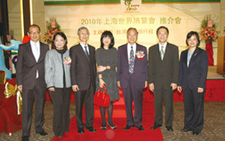 本次上海世博吉祥物「海寶」也特別現身會場與貴賓合影。(左起)台灣觀光協會秘書長汝洪海、台灣中國旅行社董事長周慶雄、台北市副市長吳清基、上海世博會事務協調局副局長陳先進、台灣中國旅行社總經理黃德貞。看好兩岸觀光交流日漸頻繁的熱潮,早年以經手歐美團體為主,近年來則是在陸客來台的接待上名列前茅的台灣中國旅行社,藉著過去豐富的接待經驗以及所累積的資源人脈,不僅榮膺接待大陸國家旅遊局高層首發團、陸客來台首發團等殊榮,並經手接待大陸各界重量級貴賓來台觀光事宜,也因此得以取得2010年上海世博會台灣地區的門票銷售代理。