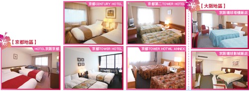 以下飯店皆為京阪集團飯店,京都地區飯店位置極佳都在京都車站前。大阪地區飯店則靠近環球影城,圖片皆為標準雙人房,歡迎各家業者多加參考及利用。