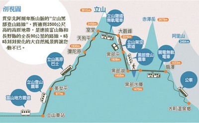 安排在此進行全日的活動,並且安排有「登山鐵道纜車」、「高原公共巴士」、「立山隧道無軌電車」、「空中纜車」、「黑部隧道電纜車」、「觀電隧道無軌電車」 6種交通工具,完整體驗立山黑部。