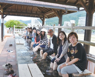 號稱日本最長的小濱足湯,有105公尺,源頭溫度高達105度,坐在這裡,欣賞眼前的美景,是一大享受。除了足湯,還有步行溫泉,可以邊散步邊腳底按摩邊泡溫泉,更有寵物溫泉。據統計每年有近20萬旅客到此泡湯,當然,泡湯的地方少不了溫泉蛋,有時間的話也別忘了品嘗一下。因為小濱的日文發音近似歐巴馬,這裡又被戲稱為歐巴馬足湯,還有一個逗趣的歐巴馬泡湯紀念招牌。
