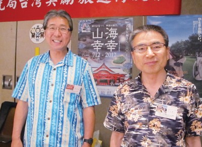 ▲(左起)宮崎觀光會議協會會議˙運動場地推廣局誘致部長瀨戶口英明、誘致部長竹山雄二。