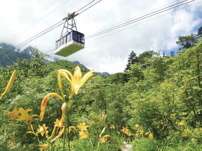 ▲立山黑部平車站附近可一望夏綠及積雪的美景。