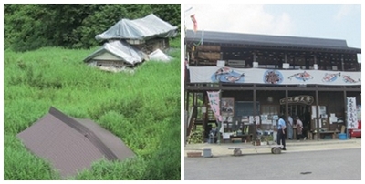 ▲中越震災走山後的滅頂房屋遺址與紀念中心。