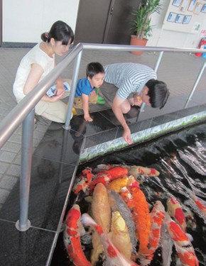 ▲錦鯉之里的觀賞用鯉魚,隻隻碩大美麗。