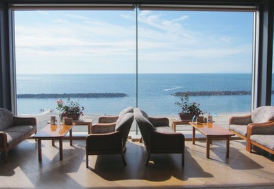 共90間房,標榜全部房間面向日本海,面海的附設免費足湯極受親子客歡迎。露天溫泉因鄰近海面,宛如海上風呂的泡湯令人難忘。