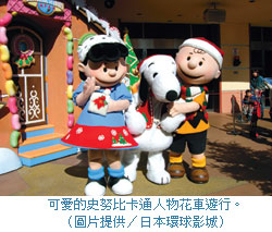 除此之外,為慶祝環球影城5週年所舉行的年間特別活動「快樂和諧饗宴」花車遊行,也於11月起推出聖誕特別版本,由眾多卡通人物組成的華麗隊伍唱著應景的聖誕歌曲,讓遊客感受溫馨歡樂的聖誕氣氛,而每年不能錯過的重頭戲莫過於在全日本第一高的聖誕樹「光之大道」前,在悠揚的歌聲與絢爛的煙火中渡過一個浪漫的聖誕節;在迎接2007年的前夕也會有各式煙火配合音樂的新年倒數派對,讓遊客在每個節日都能在此渡過特別而美好的時刻。