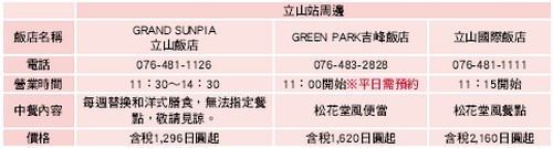立山站及扇澤站周邊接待團客用餐設施