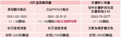 ② 逛完立山黑部阿爾卑斯山路線後前往扇澤站的大町溫泉附近飯店用餐,可避開擁擠人潮。