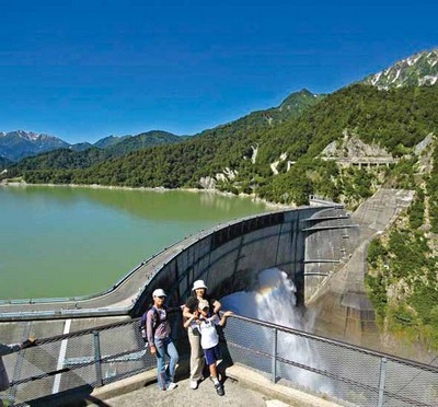 立山黑部除了有遠近馳名的雪牆外,夏秋之際更有充滿魄力的黑部水壩洩洪能夠觀賞。黑部水壩為全世界最大的拱型水壩,將從6/2 6起開始洩洪,每秒10噸以上的排放水量相當壯觀,如瀑布般的景象更是讓人震懾。旅客能夠搭配6種交通工具輕鬆轉乘,享受最消暑的立山黑部之旅。
