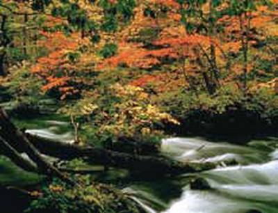 ‧奧入瀨溪流 奧入瀨溪流有著多種風貌的清澈溪水、瀑布與美麗的原始樹林景觀。待時節進入10月中旬, 旅客能夠走在清澈的溪流旁 步道上,欣賞黃紅綠各色交織的秋季奧入瀨溪流景色。