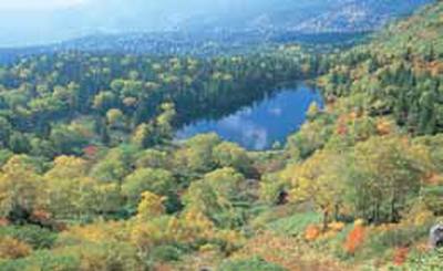 ‧八幡平 八幡平是岩手縣的賞楓名勝,每年秋季的山岳楓紅景致總吸引無數遊客前來欣賞。除了紅楓,山腰上的山毛櫸等落葉 樹林的樹葉也開始染黃,形成一 幅秋色交織的美麗畫面。