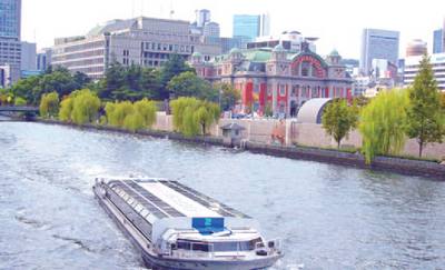 搭乘水上巴士穿梭於河川渠道間,四季變換的岸上景致更增乘船樂趣,沿途可欣賞中央公會堂等壯麗建築。共有大阪城、八軒家濱、淀屋橋及OAP 共4處碼頭,可任從一點上