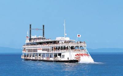 ‧琵琶湖汽船密西根號密西根號週遊於琵琶湖南邊,船內提供輕食、自助餐與套餐等多樣化餐食。從最上層的空中甲板能眺望到3 6 0 度的全景,將琵琶湖的雄偉之美盡收眼底。