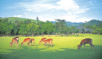 奈良公園地域廣闊景色如詩如畫,棲息於公園內的鹿群為特色之一。園內還有世界文化遺產東大寺、唐招提寺與春日大社等具代表性的寺廟神社。