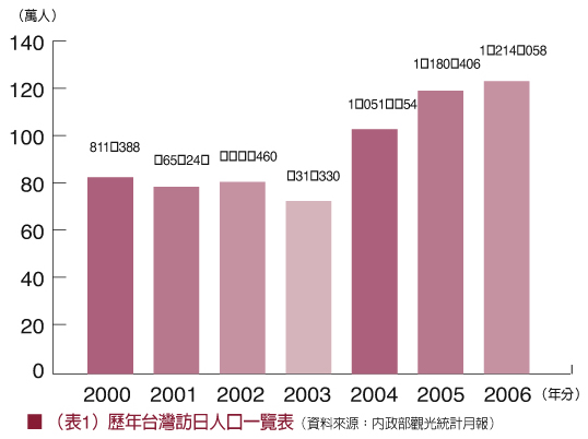 ■ (表1)歷年台灣訪日人口一覽表(資料來源:內政部觀光統計月報)