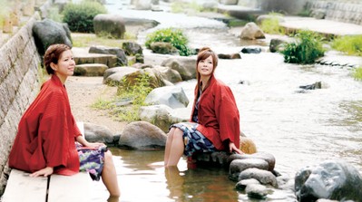 岡山的美作地區擁有許多溫泉鄉,其中湯 鄉溫泉、湯原溫泉以及奧津溫泉合稱為 「美作三湯」。湯鄉溫泉擁有1,200年歷史,據 傳是法師看見受傷的白鷺在此療傷因而發現, 因此又有白鷺之泉一稱,溫泉街上也能看見壯 觀的白鷺噴泉,是著名的溫泉療養地。湯原溫 泉最著名的是全天候開放的免費公共湯池「砂 湯」,在河床上用石頭圍出湯池,可邊欣賞溪 流、水庫風景,邊享受泡湯野趣;冬至當天甚至會放入許多柚子,據傳泡了柚子湯不但皮 膚會變美,還可以預防感冒呢!而奧津溫泉的泉質據說可以美 白,因此以美人湯聞名。以前為了避免野狼或熊襲擊家園,也衍 伸了在溫泉旁一邊用腳洗衣服,一邊守備的習俗,現在也能看到 此表演。