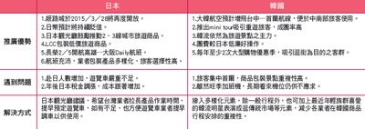 2015日韓商品趨勢由於日本及韓國離台灣僅需2~3小時的航程,充足的航班加上截然不同的地理環境、氣候及文化特色,對台灣人而言,正是出國旅遊的首選。而近年來為了越來越多的機位需求,日韓LCC不斷來台增加航點,而台灣威航也預計今年開日韓航線,搶攻東北亞黃金航線市場。雖然日韓旅遊對於台灣市場吸引力始終有增無減,但其實目前多數客群都是已經造訪過而打算重遊的旅客,針對這部分,除了加強「主題性旅遊」商品的推廣外,許多業者也正積極規劃半自由行的mini tour,讓自主性較高的旅客靈活運用自由時間,吸引顧客有再度參團的意願。另外在LCC開航使機票價格不斷降低,降低旅遊成本的情況之下,除了旅遊之外,也讓「跑單幫」造訪日韓的人數增多,而自由行/半自由行也將成為未來重要趨勢。