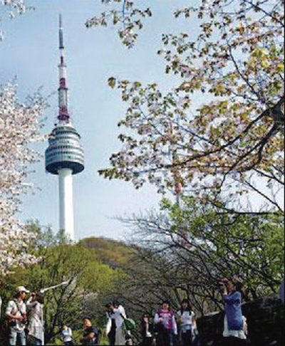 3.首爾南山公園可以說是首爾指標的南山公園,每到春天,由南山圖書館到南山八角亭、八角亭至國立中央劇場連接起來的南山循環道路,沿途迎春花與杜鵑花、櫻花盛開,形成美麗壯觀的景象。