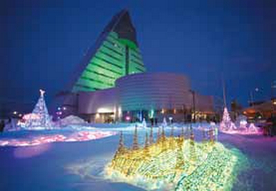 ★青森光之幻想「青森光之幻想」燈光秀固定每晚舉辦,晚間7點、8點、9點設置在青森觀光物産館ASPAM正面牆上的12盞移動探照燈與LED燈就打上燈光,相當夢幻。冬季特別於晚間6點增加點燈時段,一次點燈約實施5分鐘。
