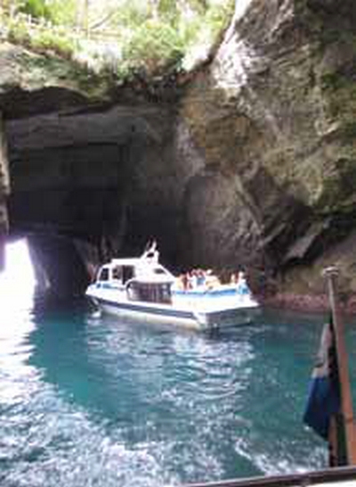 一年四季皆有出航的遊覽船,海上巡遊航程約20分鐘,每人1,200日圓,能直接開入自然形成的天窗洞內,從洞窟內欣賞從天窗灑下的陽光,海水因而顯得更加湛藍,是難得一見的地質奇景。
