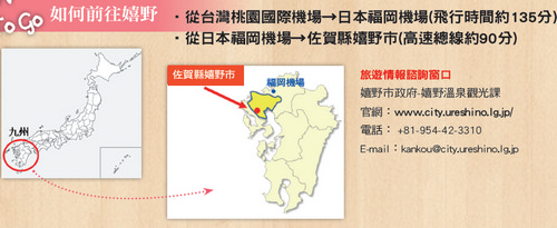 去年,佐賀縣被日本國內某大旅行住宿預約網站所舉辦的「2014秋季人氣旅行地 排行榜」選為第一名,受到許多媒體的注目;根據該網站的分析,佐賀縣也高居 「2014日本國內旅行注目度年間第一名」。如此人氣炙手可熱的佐賀縣,縣內的住 宿預約居然有超過半數都是集中在「嬉野溫泉鄉」與其周邊地區。最主要的原因, 莫過於嬉野溫泉鄉擁有「日本三大美肌湯之一」的最高讚譽。